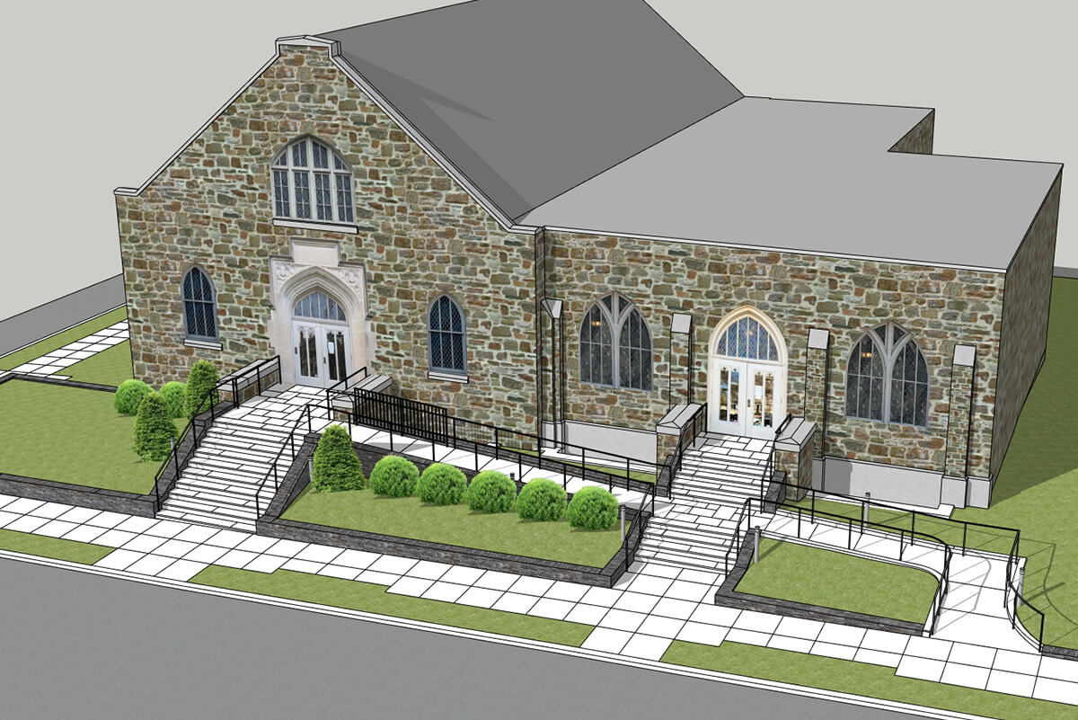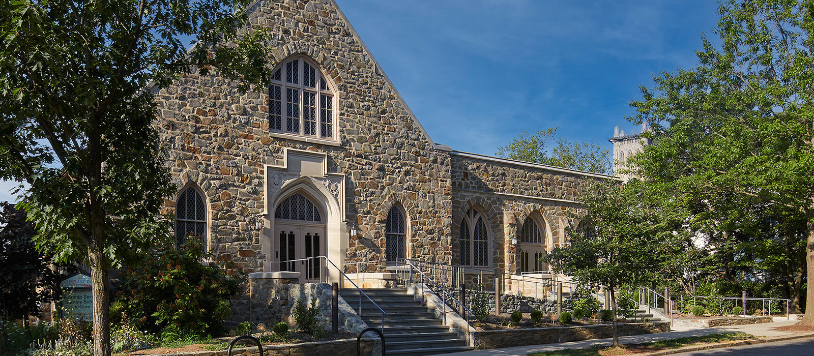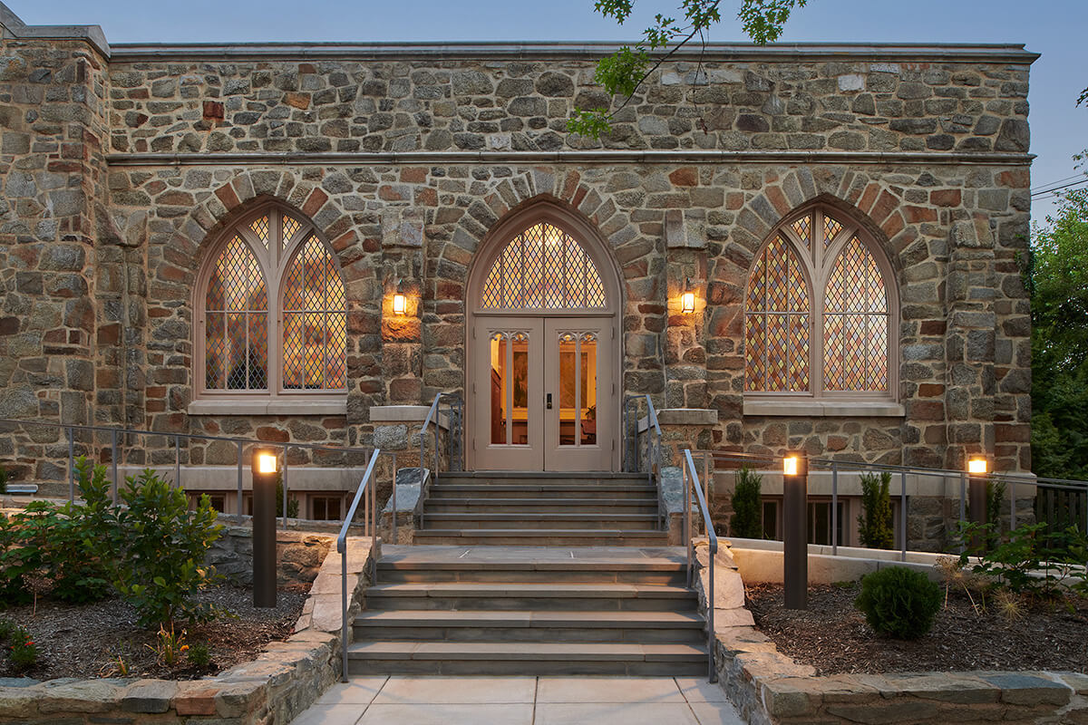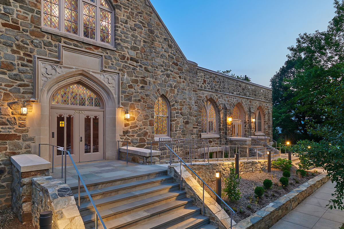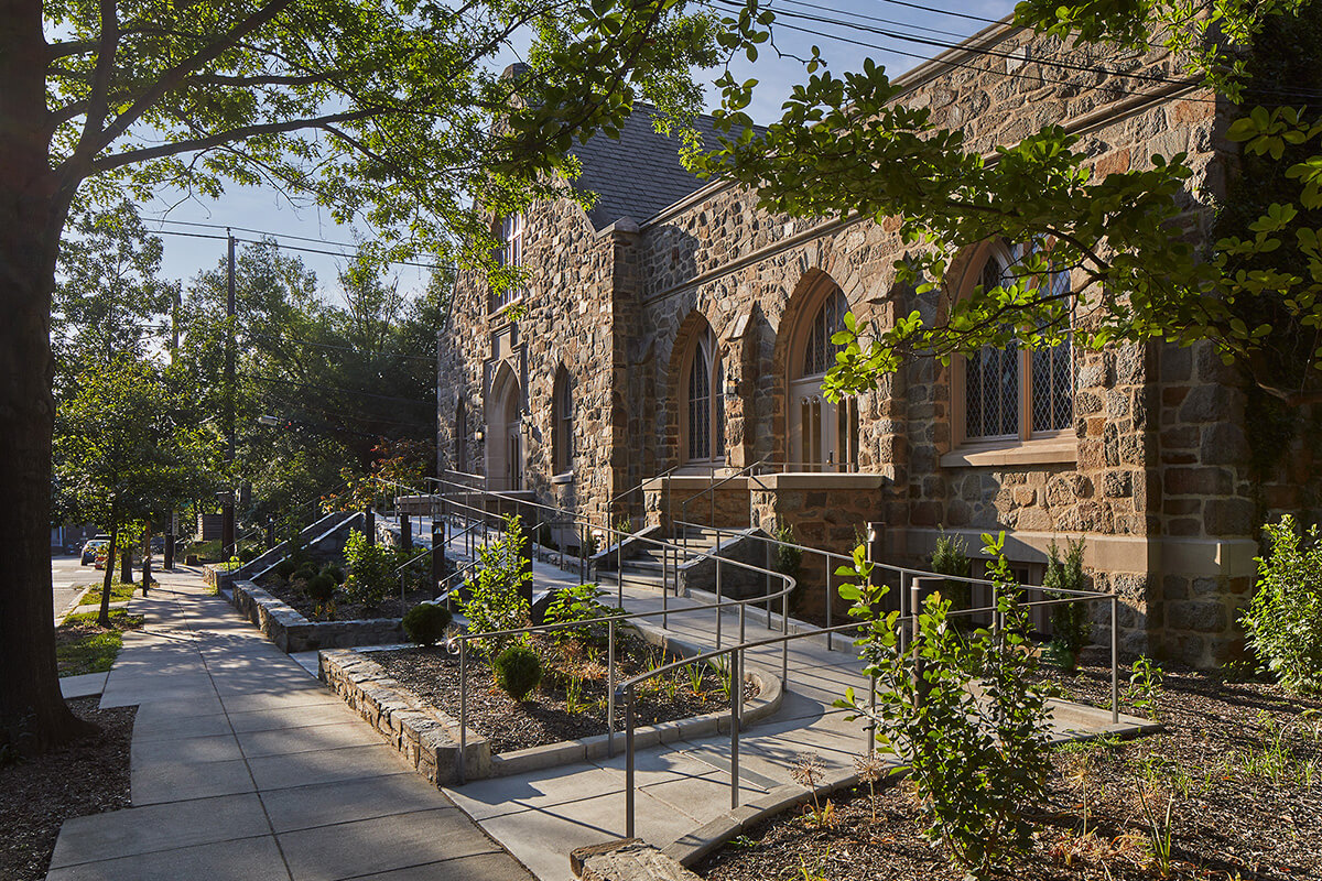 Reconstruction of entry stairs and addition of accessible ramp in Cleveland Park Historic District.